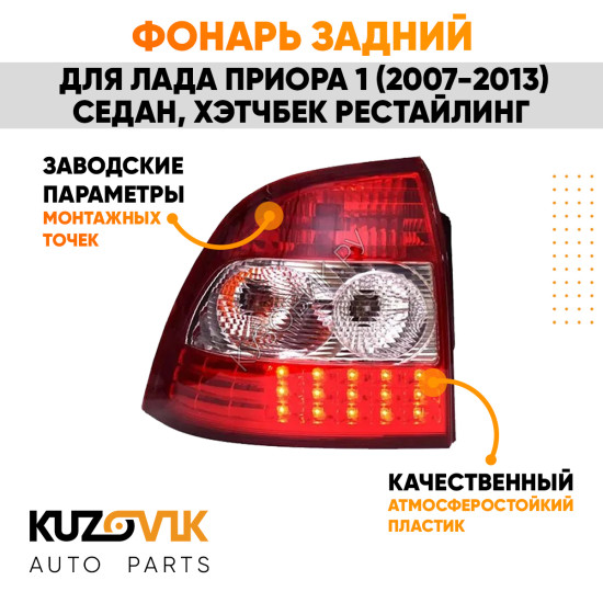 Фонарь задний левый Лада Приора 1 (2007-2013) седан, хэтчбек рестайлинг с диодами KUZOVIK.